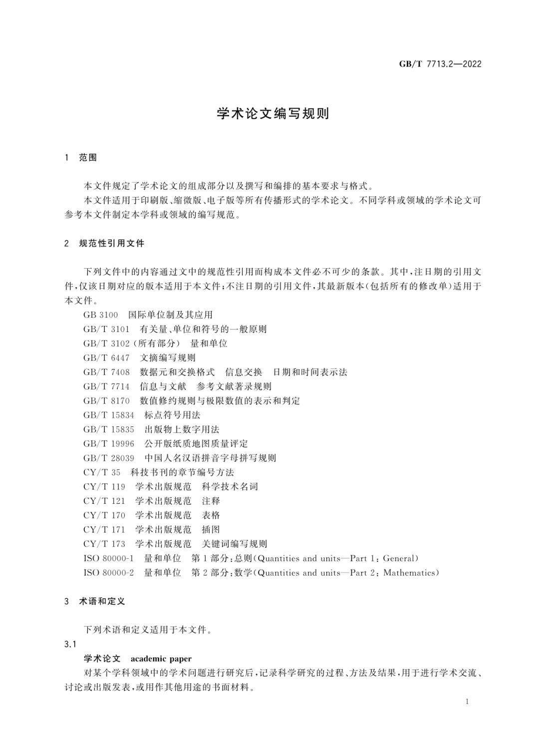 学术论文编写规则(GB/T 7713.2—2022)