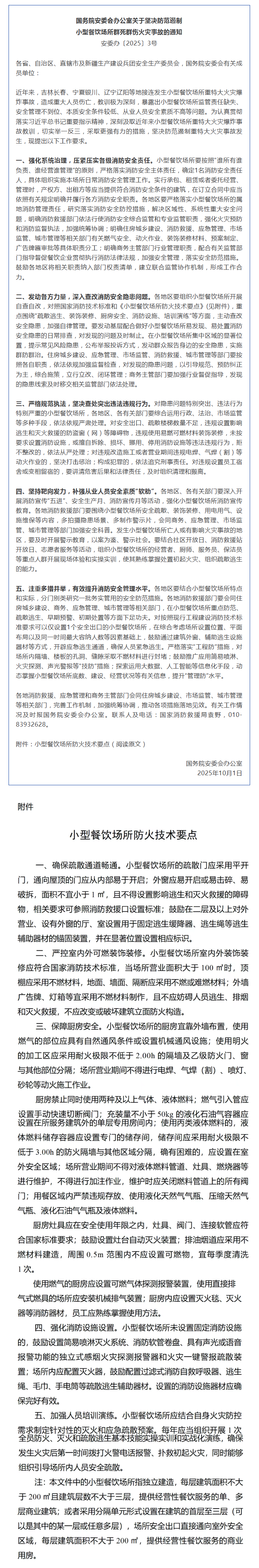 国务院安委会办公室关于坚决防范遏制小型餐饮场所群死群伤火灾事故的通知