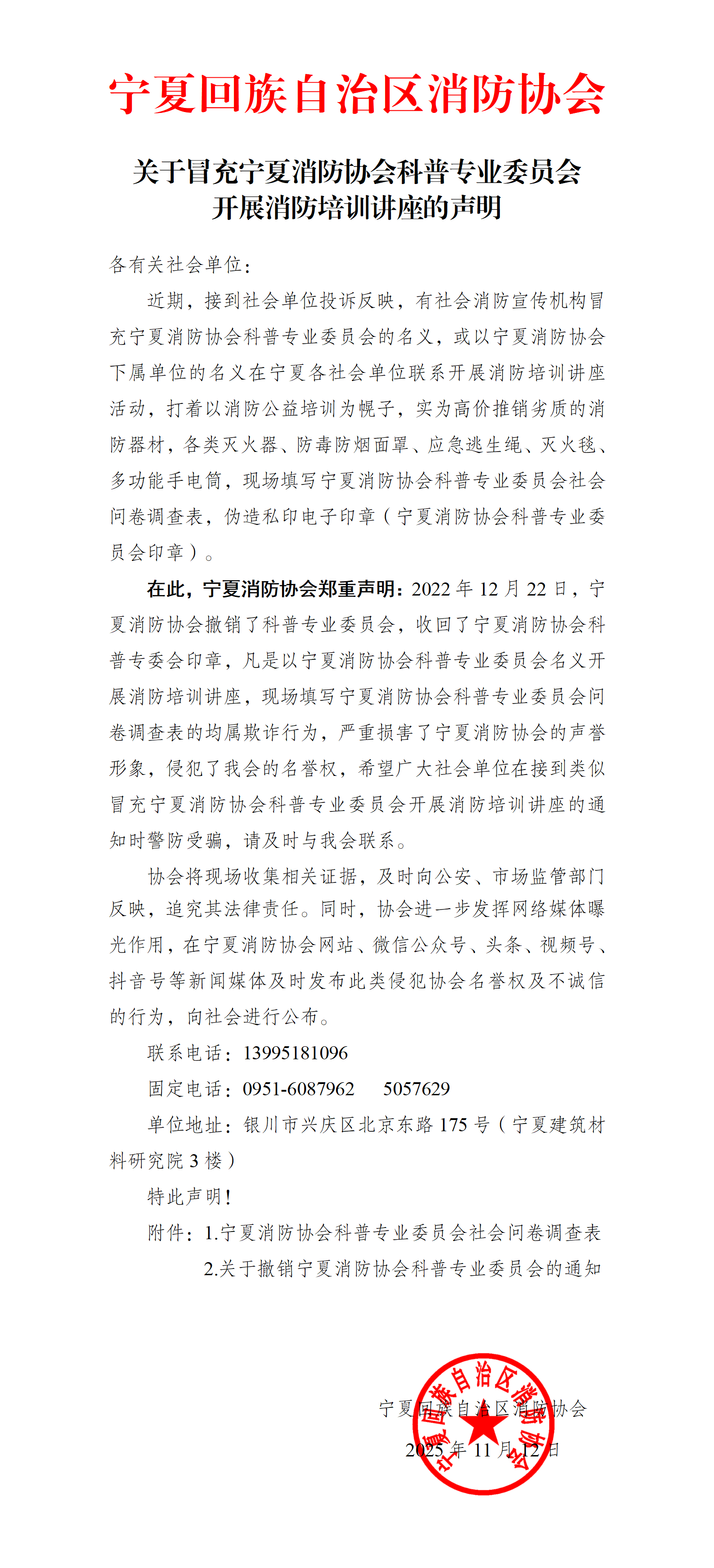 关于冒充5630福彩网科普专业委员会开展消防培训讲座的声明